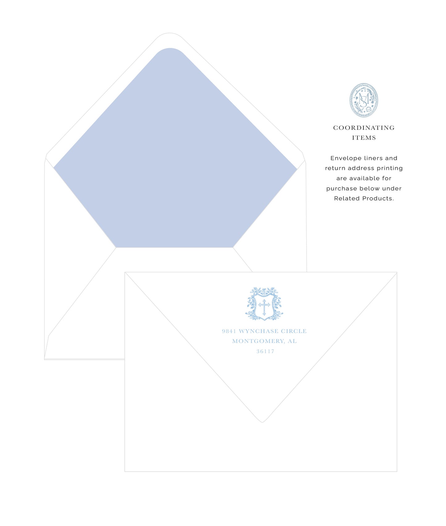 Blending classic Southern design with meaningful symbolism, the Blue Heirloom Cross Crest features an ornate cross framed by delicate detailing. The soft blue tones create a refined look for baptisms, confirmations, or everyday correspondence with a personal faith-centered touch.