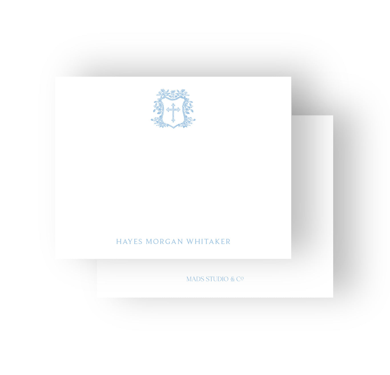 Blue Heirloom Cross Crest Flat Notecards