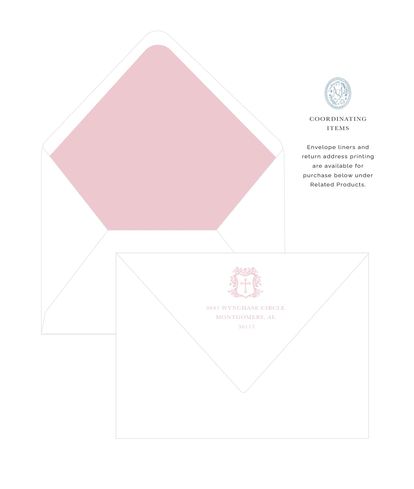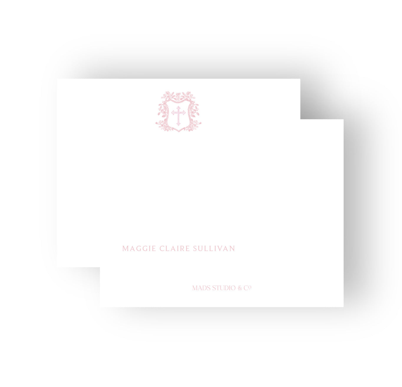 Inspired by heirloom family crests and timeless tradition, the Pink Heirloom Cross Crest features a soft blush tone with an intricate cross design. A perfect choice for baptisms, christenings, dedications, or personal notes with a meaningful touch of faith.