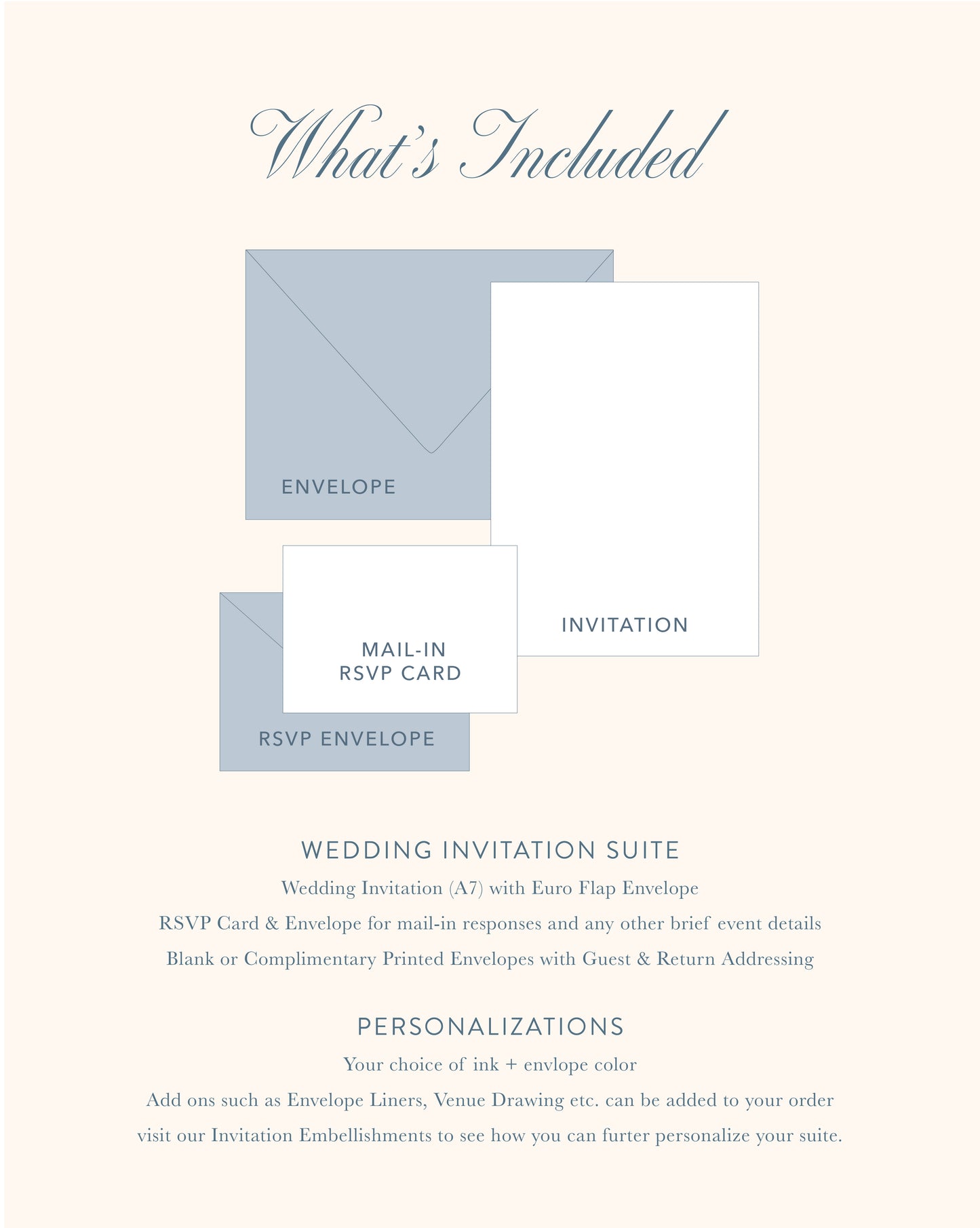 Shop add on embellishments like envelope liners, an extra details card, ribbon, and wax seals here.