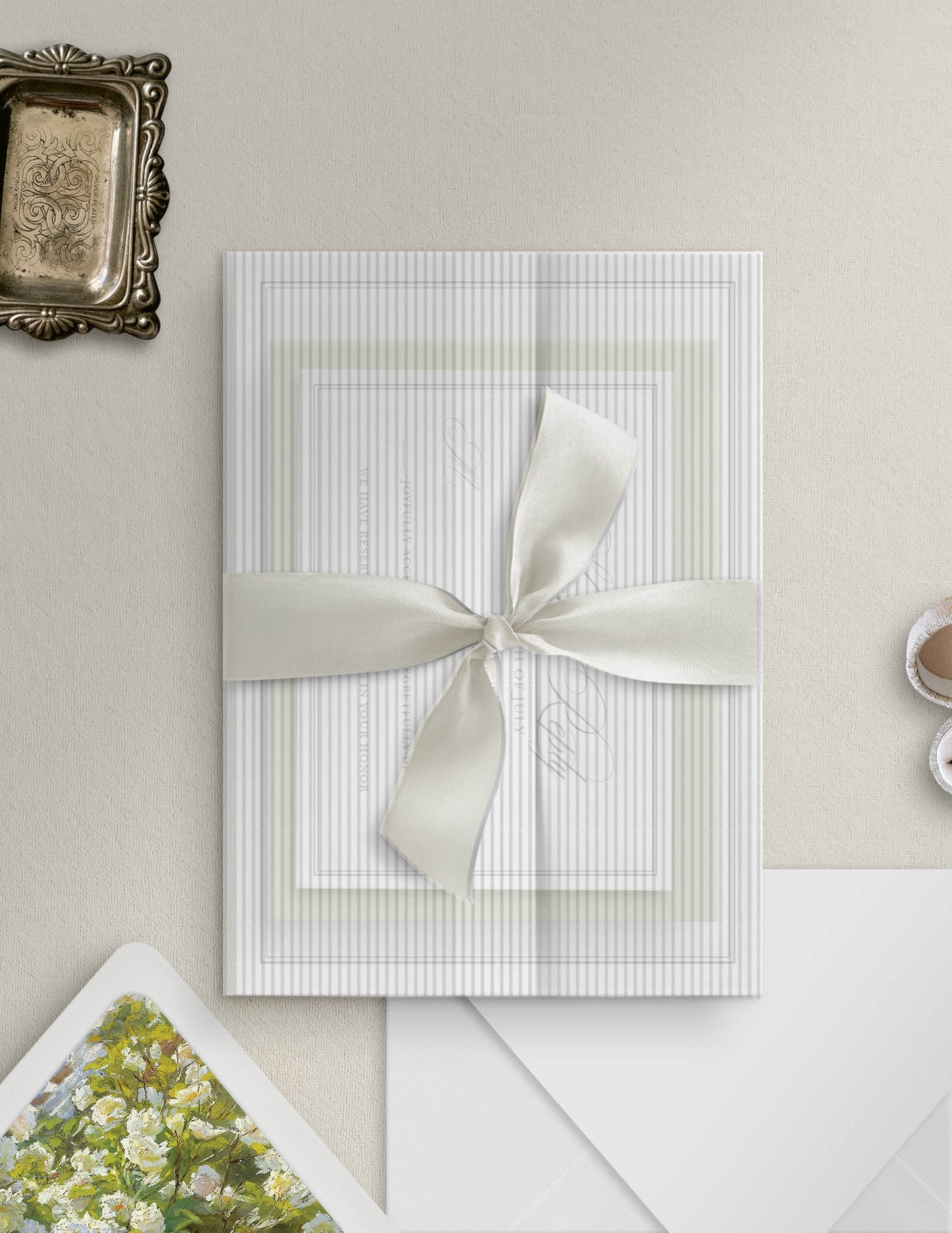 The Elizabeth Anne Suite — a true heirloom design that captures the essence of traditional Southern elegance. This suite features a refined floral envelope liner and a timeless typography. The thoughtful details—from the polished layout to the coordinating inserts—create a keepsake worthy of your most cherished moments. Rooted in tradition yet gracefully versatile, the Elizabeth Anne Suite offers an heirloom-quality presentation that will honor your wedding day for years to come.