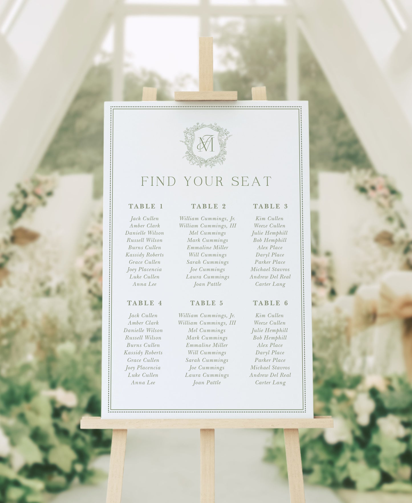 Guide your guests to their seats with a beautifully designed semi-custom wedding seating chart. Thoughtfully styled to coordinate with your invitation suite, this statement piece brings both elegance and organization to your reception while creating a polished focal point for your event.